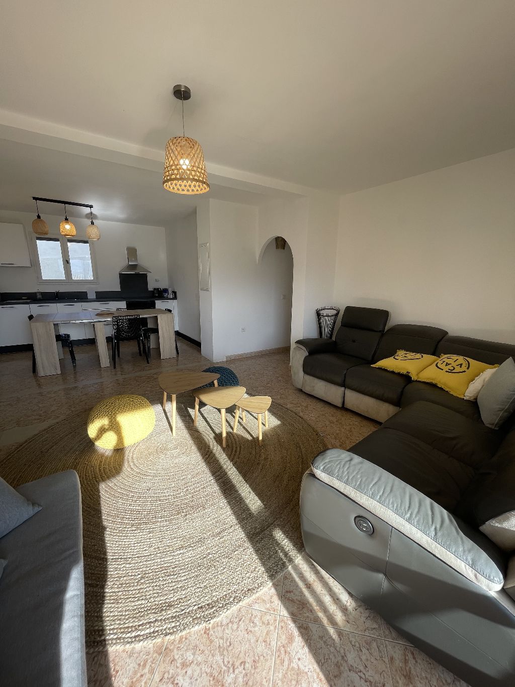 L'espace de vie de cet appartement se compose d'une cuisine ouverte toute équipée ainsi que d'un séjour climatisé donnant accès à la terrasse, idéale pour des repas en extérieur.