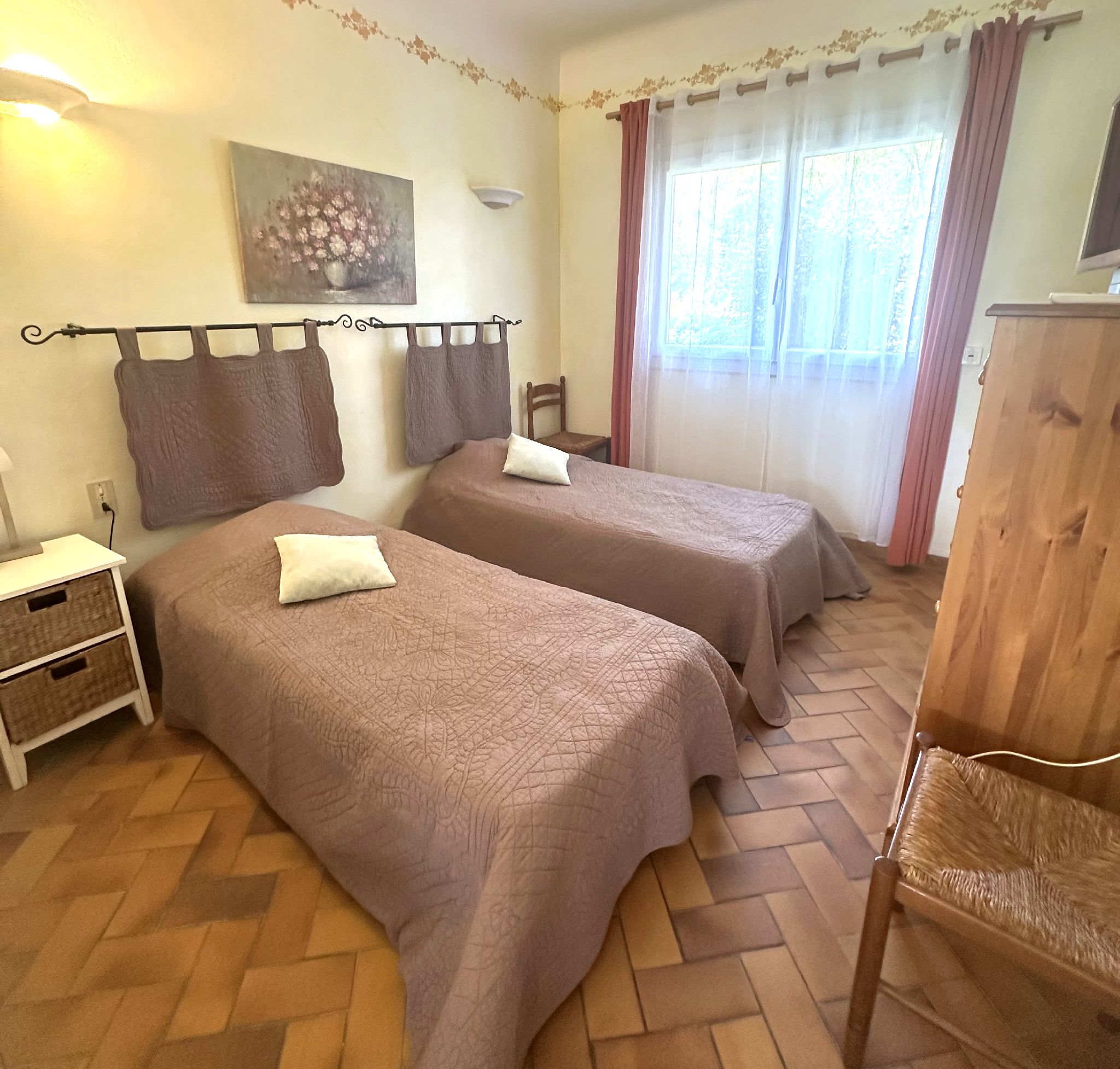La première équipée de deux lits simples, commode de rangement et téléviseur ; La deuxième aménagée avec un lit double et commode de rangement. Une salle d'eau et un WC indépendant.