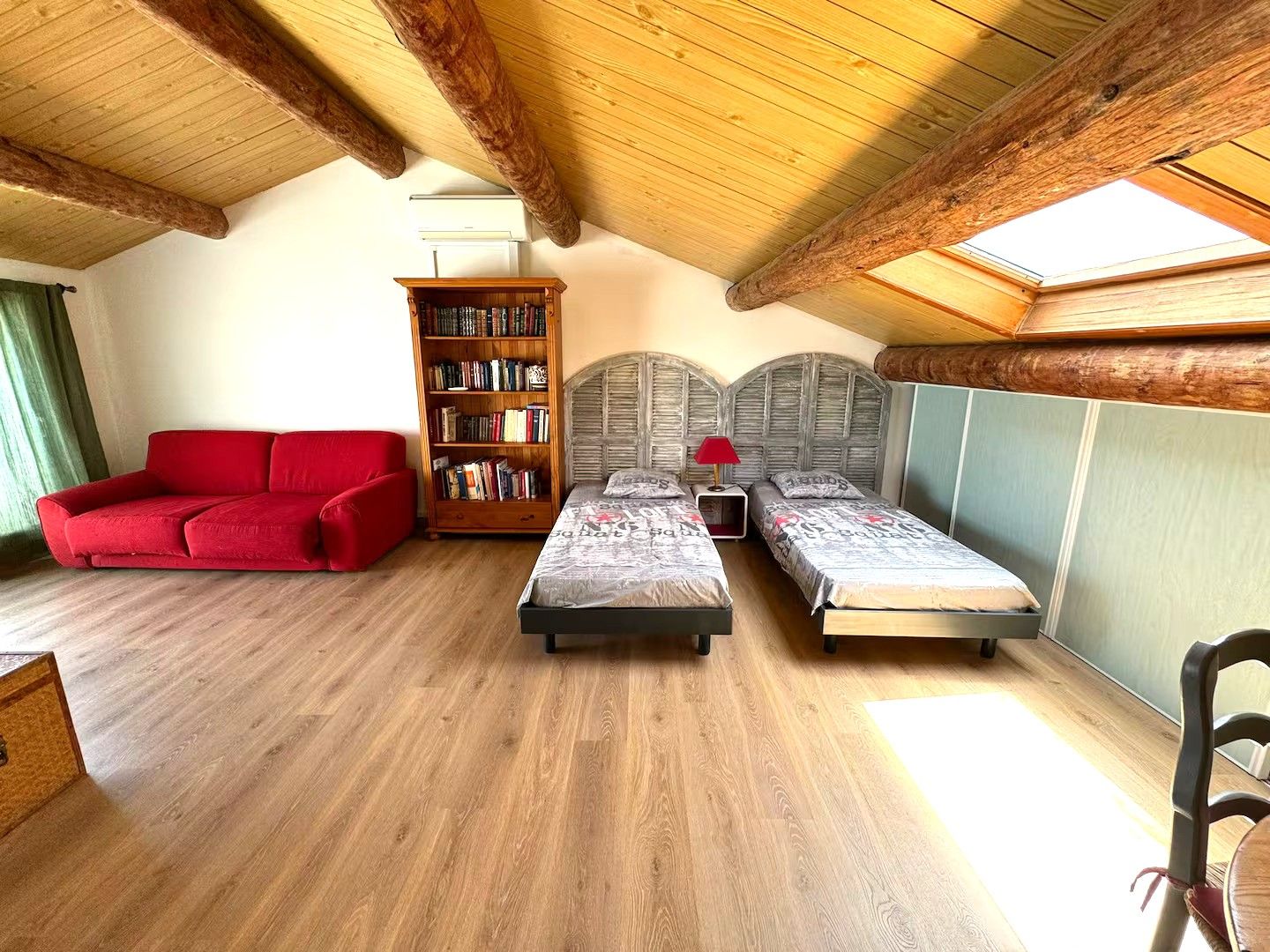 Situé au premier niveau d'une villa composée de deux appartements, cet hébergement lumineux et confortable se divise sur deux niveaux, offrant de beaux volumes.