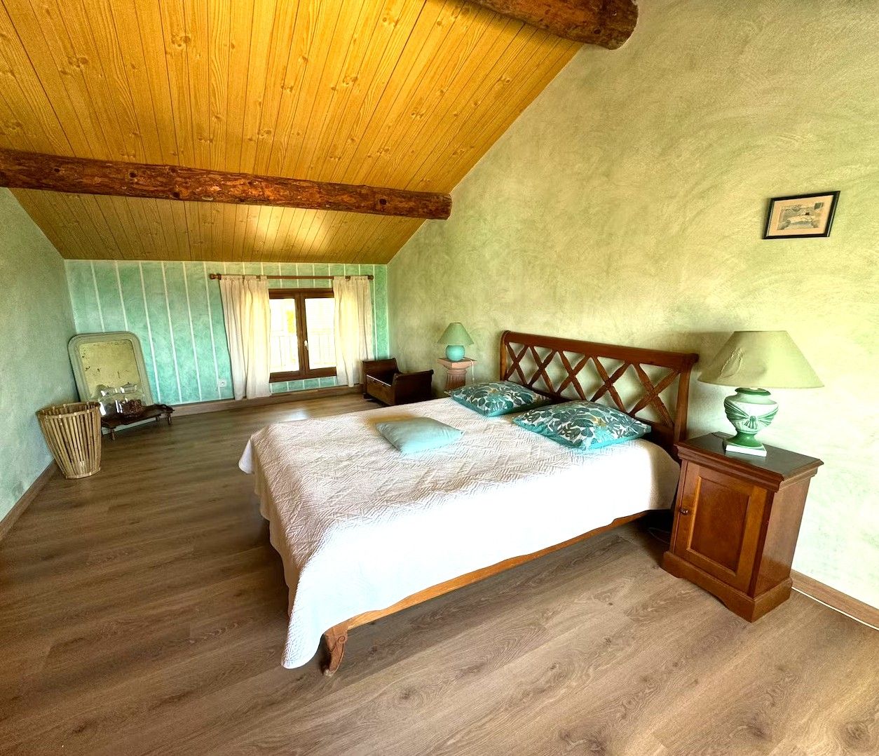 Une seconde chambre séparée, complète cet étage. Spacieuse et équipée d'un lit double, celle-ci possède une fenêtre dévoilant une spectaculaire vue sur la mer, créant une atmosphère paisible et ressourçante.