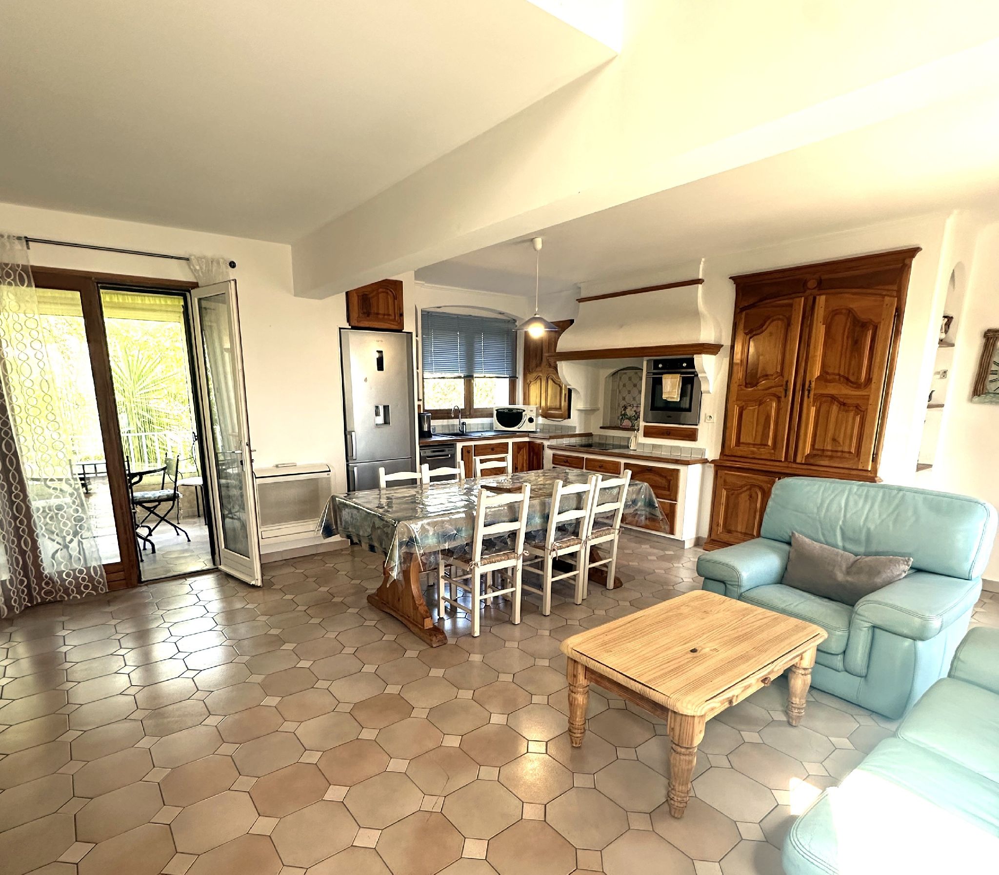 Dès l'entrée, vous découvrez un séjour spacieux et lumineux, ouvert sur une cuisine entièrement équipée et pensée pour votre confort : électroménager complet, rangements fonctionnels, et espace repas convivial.