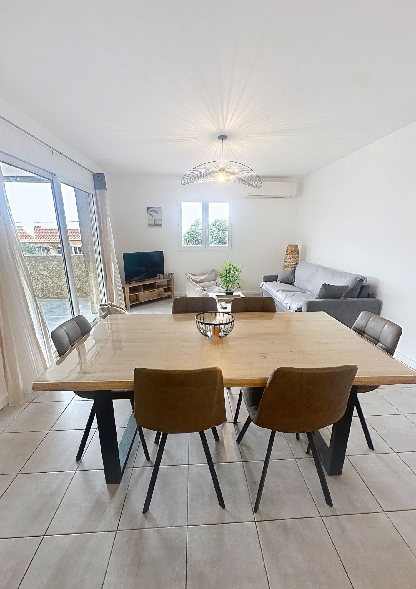 La pièce de vie, climatisée et baignée de lumière, s'organise autour d'un bel espace ouvert alliant esthétisme.