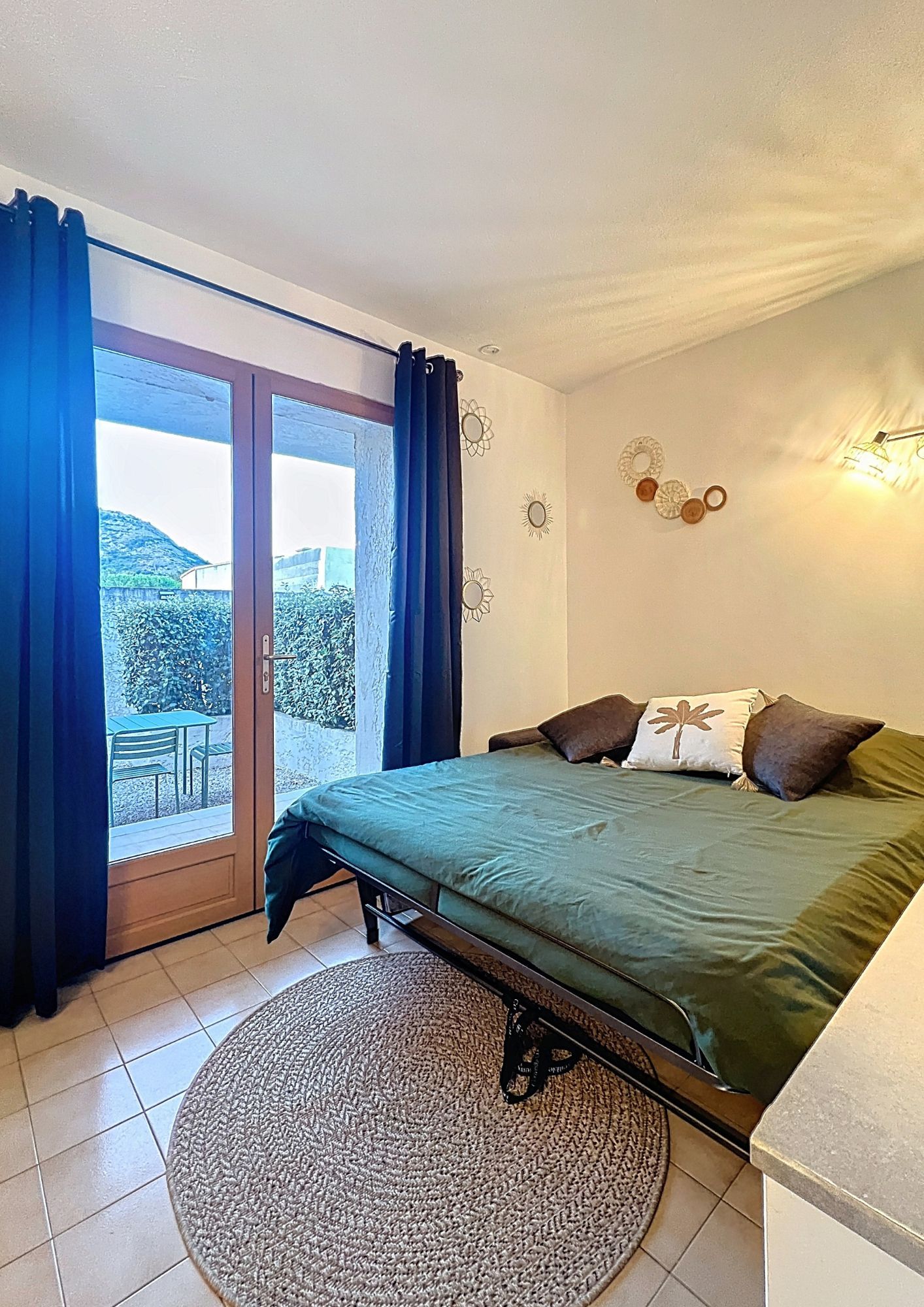 Nous proposons à la location un agréable T2 situé au rez-de-chaussée d'une petite copropriété entre Calvi et Calenzana, idéal pour vos vacances.
