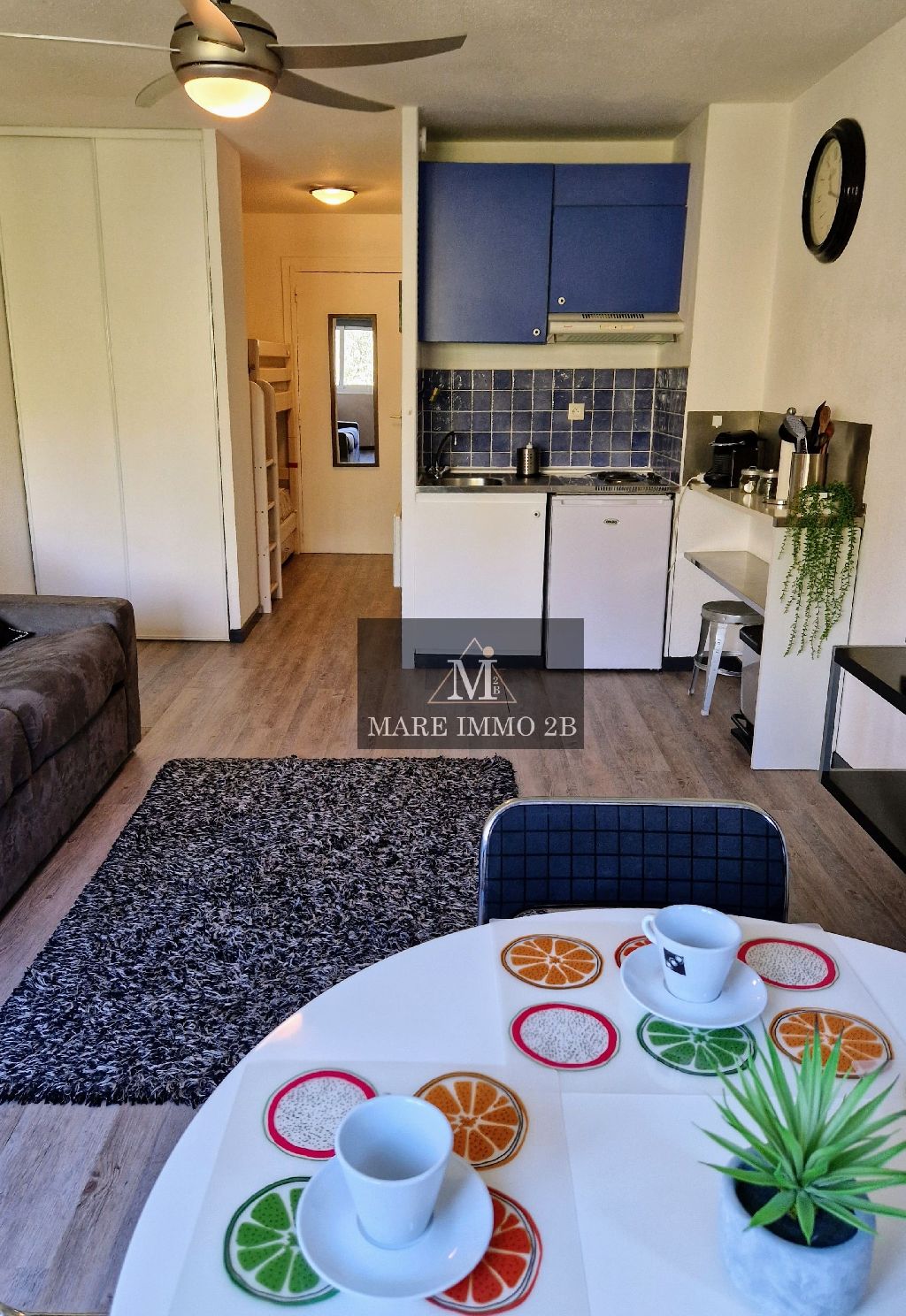 L’appartement a été entièrement refait en 2020 et se compose d’une entrée pouvant être aménagée en coin nuit.