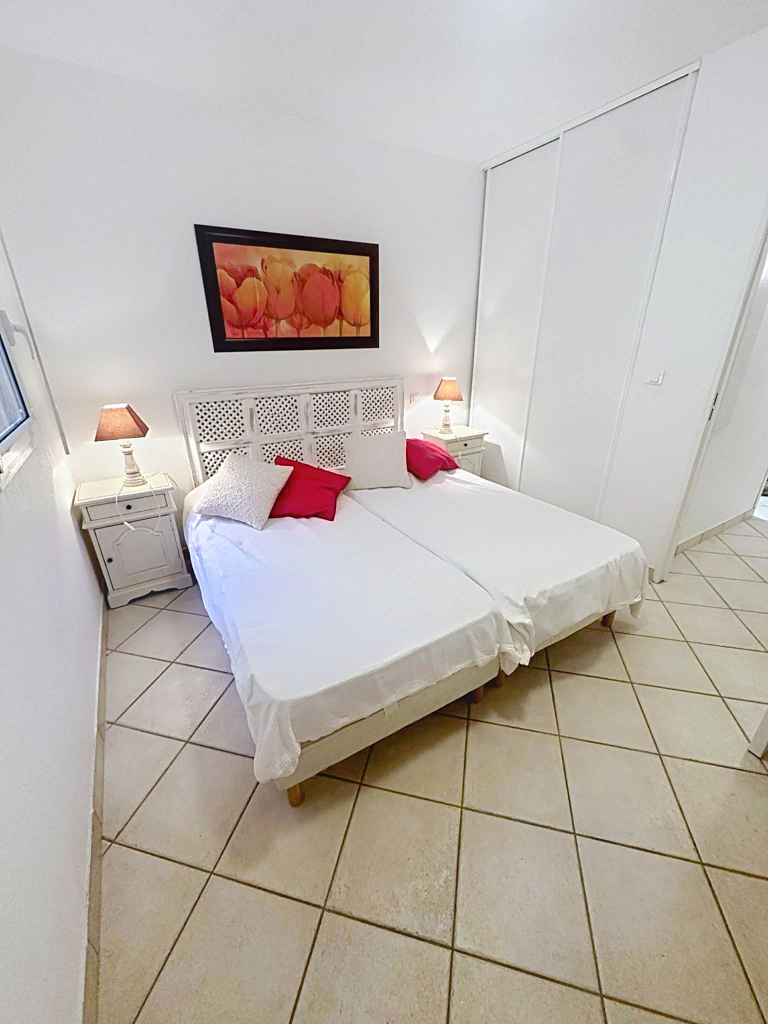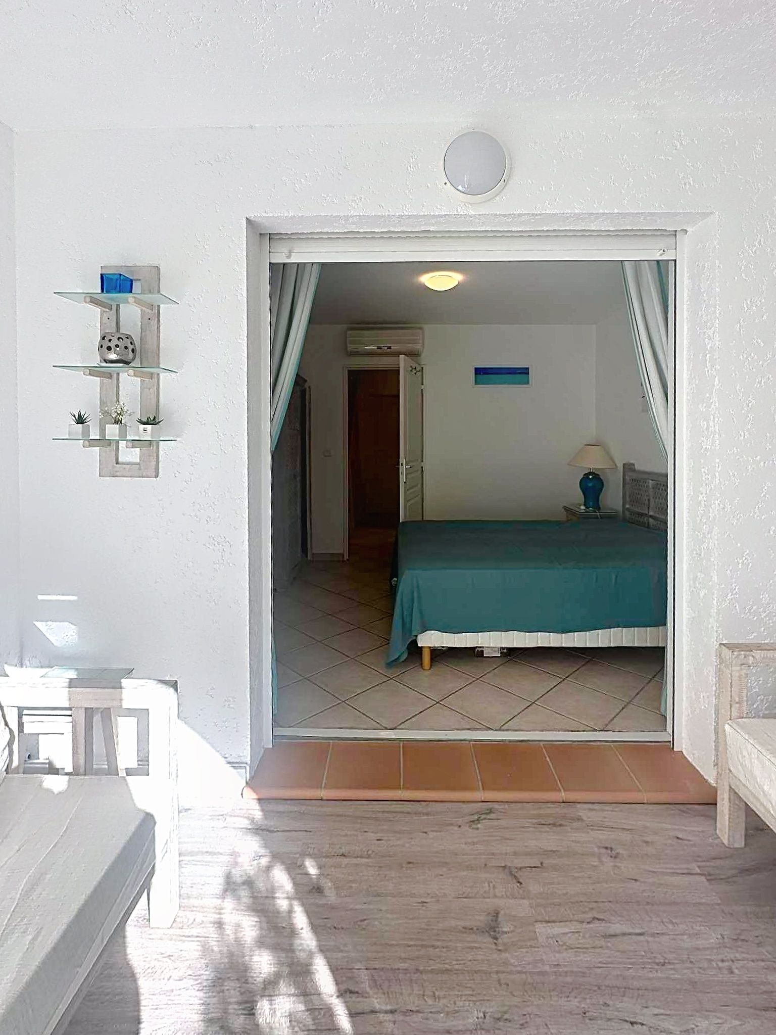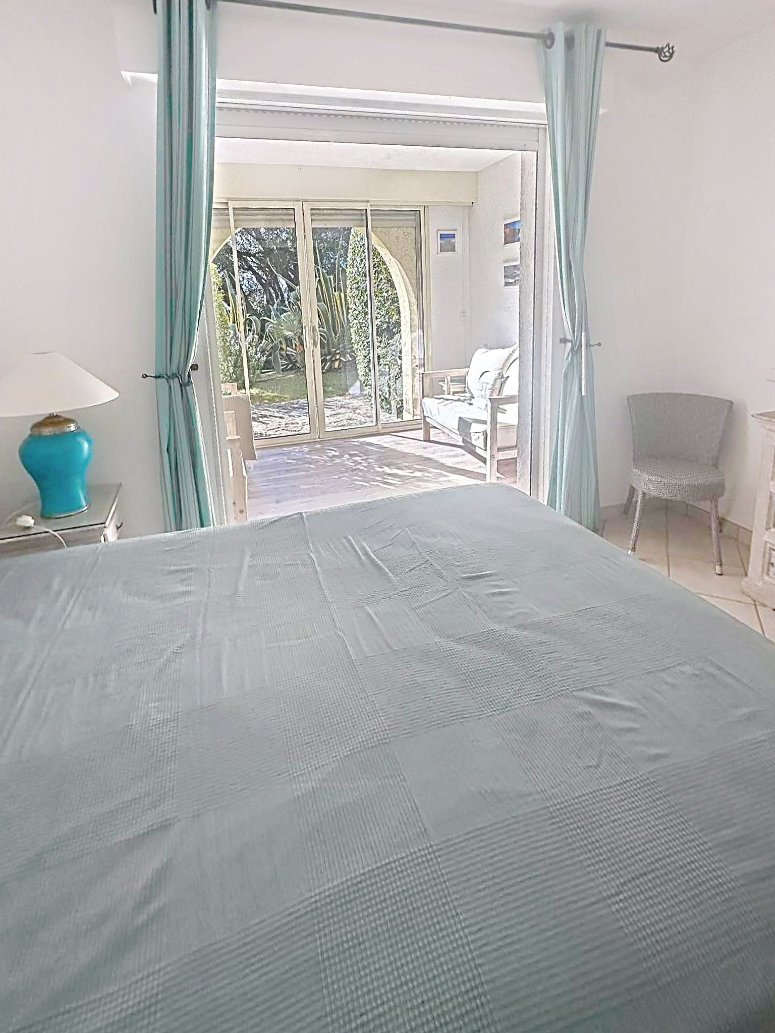 L'une des chambres bénéficie d'un accès direct au jardin, créant une atmosphère paisible et agréable, parfaite pour profiter pleinement des beaux jours dès votre réveil.