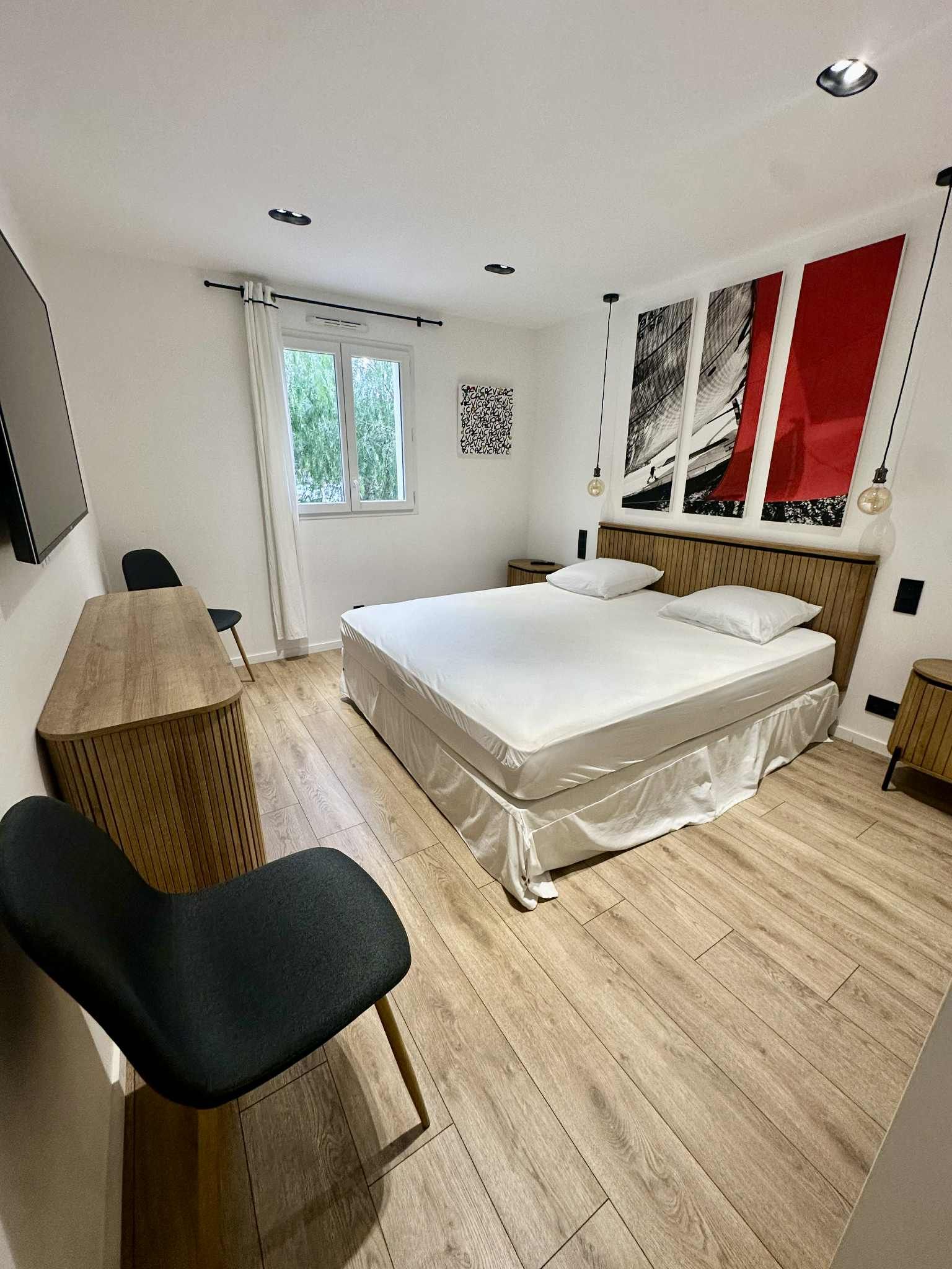 - Four - Climatisation - Réfrigérateur - Wi-Fi - Micro-Ondes - Lave-vaisselle - Plaque Vitrocéramique - Lave-Linge - Cafetière - Téléviseur - Grille-Pains - Sèche-serviettes - Bouilloire - 2 Lits Doubles en 160x200cm - Cave à Vins - 1 canapé convertible en 140x200cm - - Vélo Elliptique - 3 places de parking