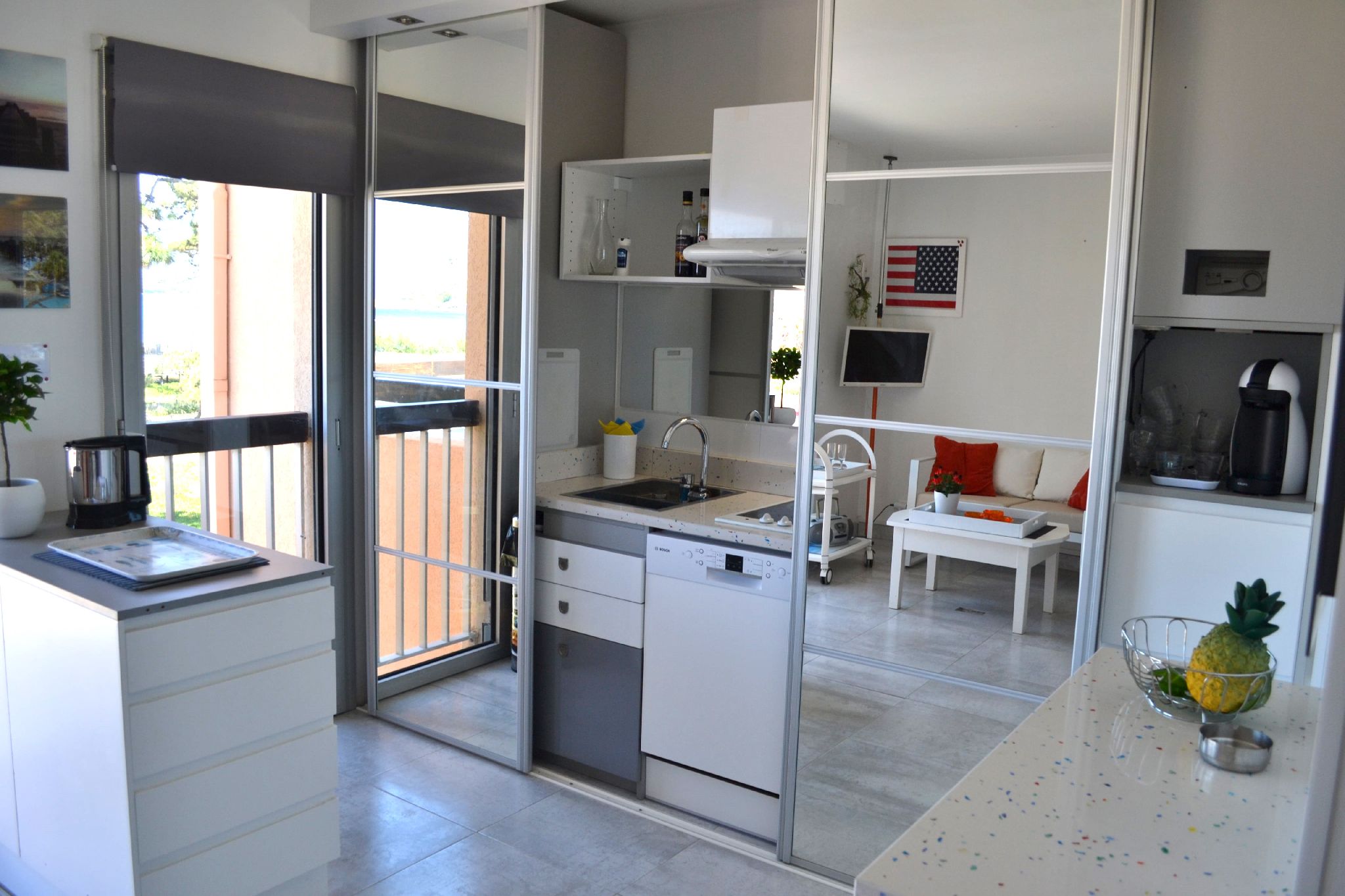Cet appartement se compose d'un espace séjour lumineux avec un coin cuisine entièrement équipé et parfaitement intégré à la pièce. Le tout donne accès à une terrasse aménagée de 8m², équipée d'un store dépliant, vous permettant de profiter d'agréables moments de convivialité en plein soleil ou à l'ombre.
