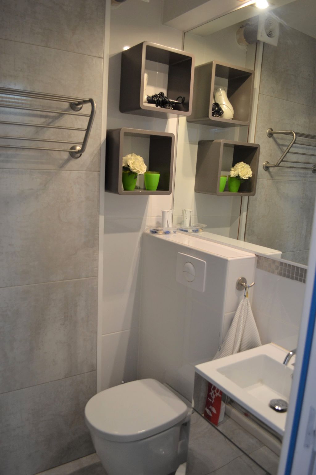 Coté nuit, les deux chambres doubles s'ouvrent sur une loggia orientée Nord-Est vous offrant des réveils les yeux dans l'eau. Salle d'eau avec WC.