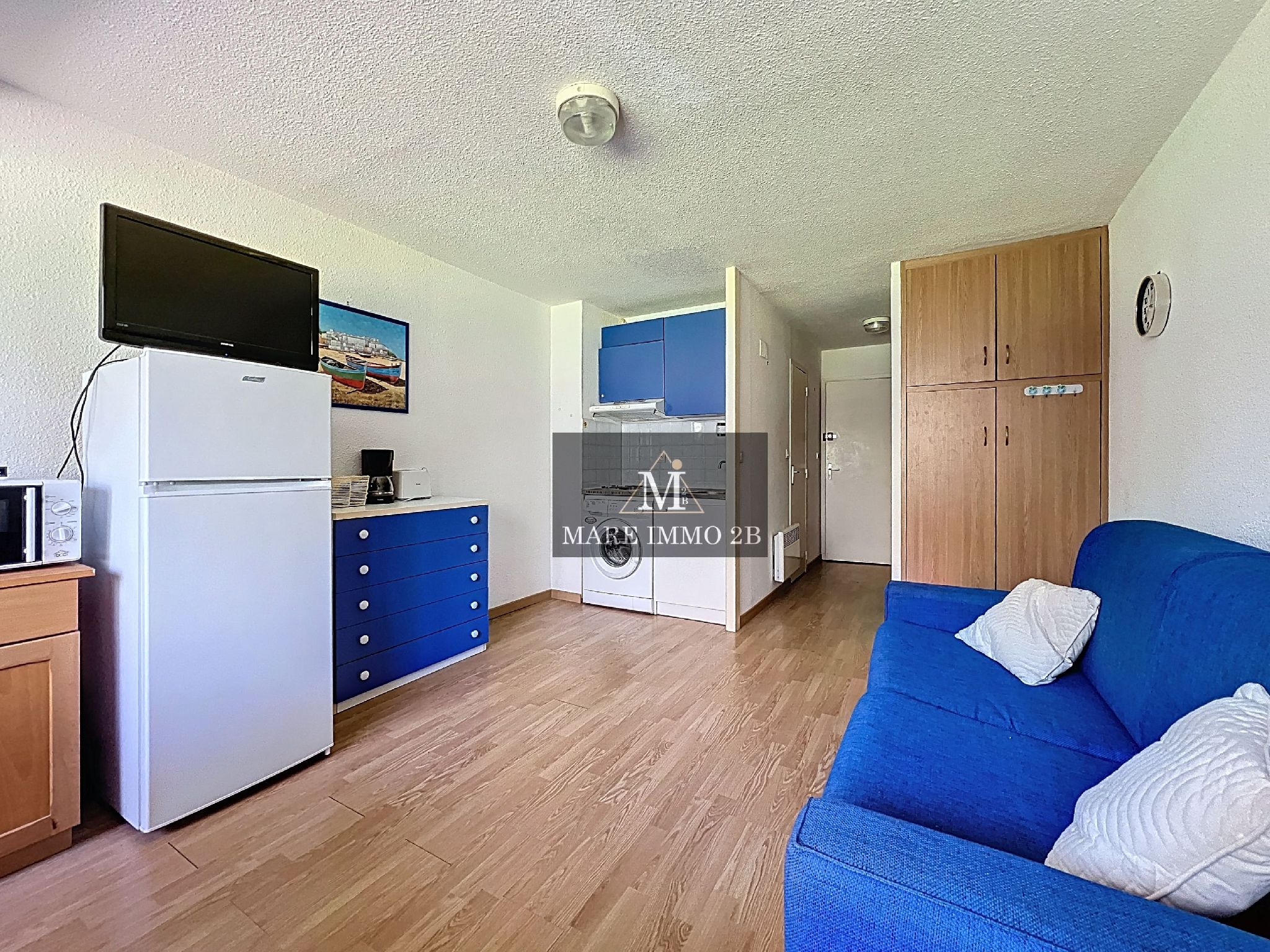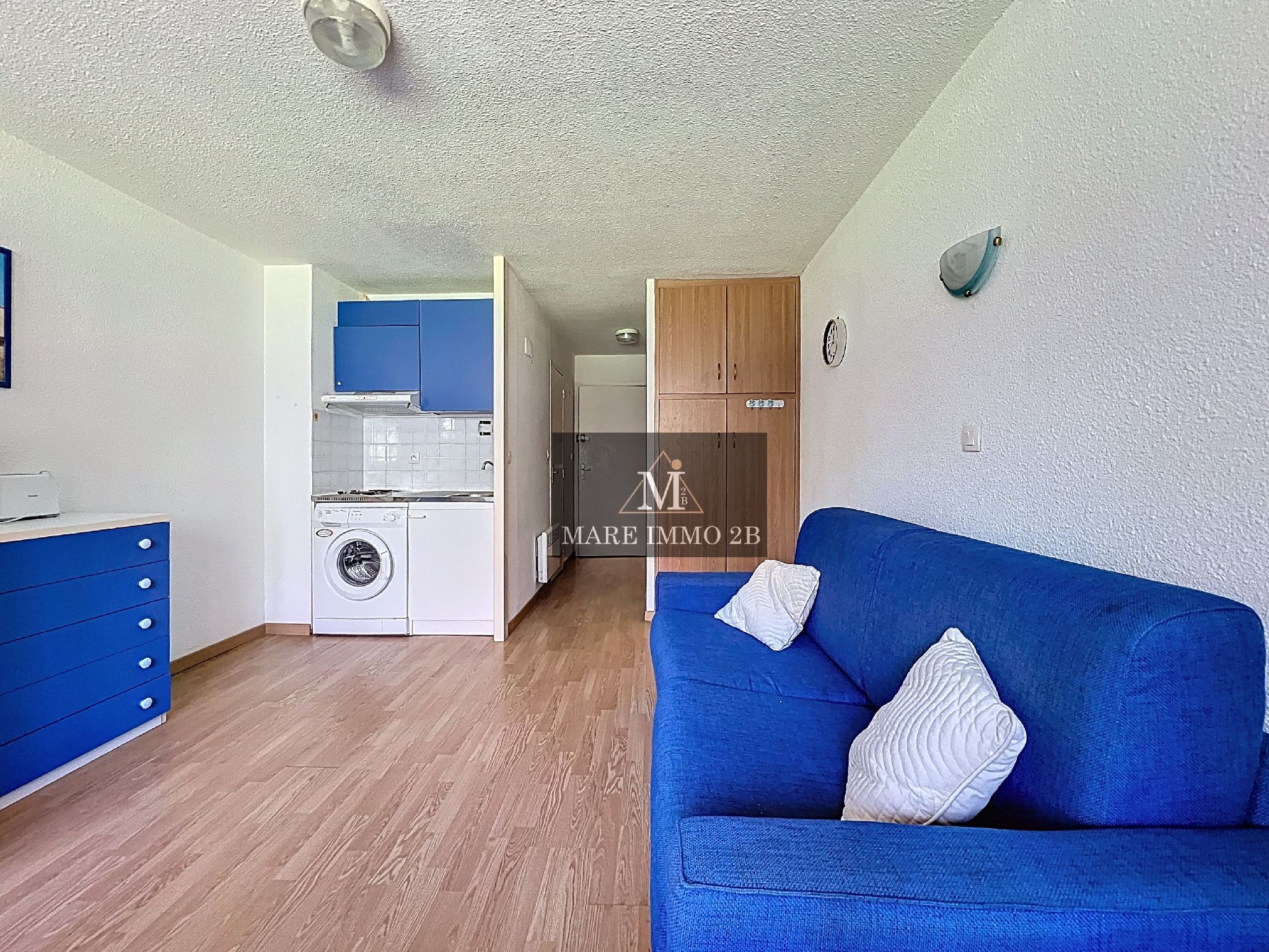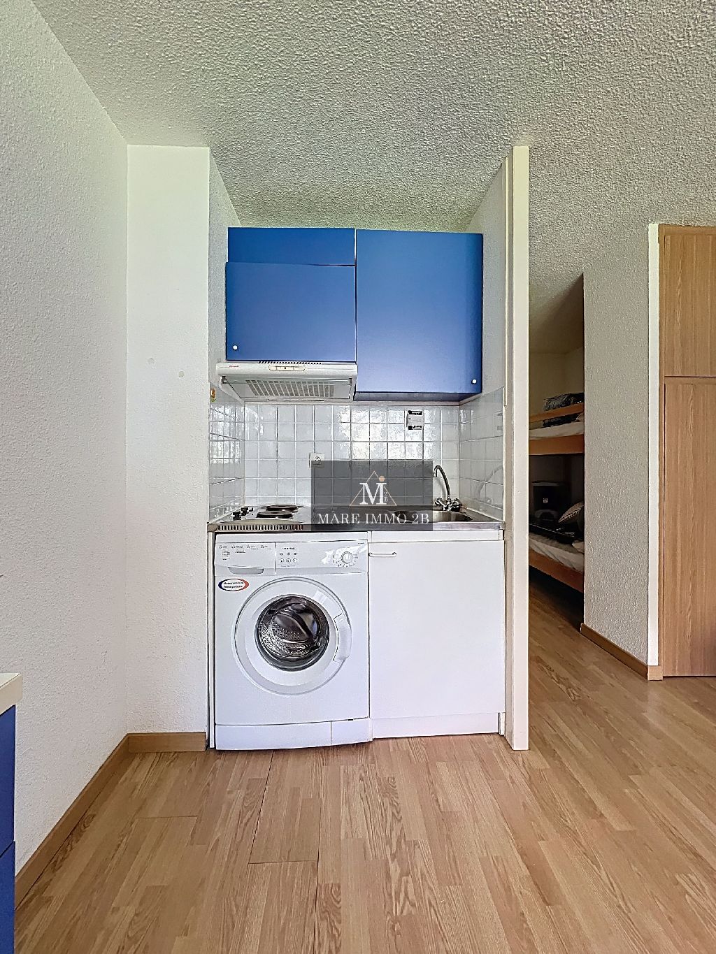D’une superficie de 25,75 m² avec loggia, ce bien parfaitement agencé se compose d’un séjour lumineux avec kitchenette, d’un coin nuit avec lits superposés, d’une salle d’eau avec WC ainsi que d’un espace de rangement optimisé.