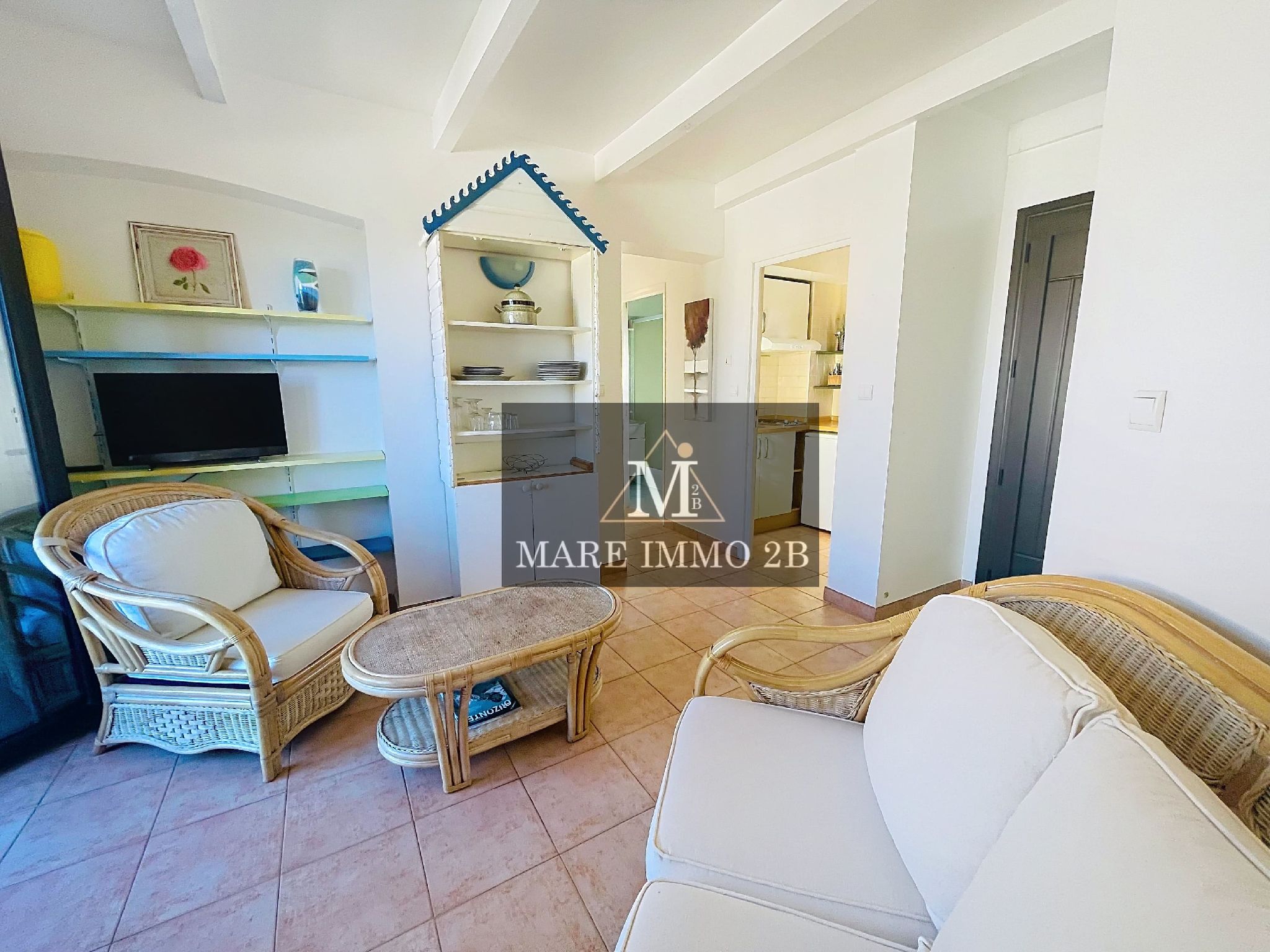 L'Agence Mareimmo2b vous propose, dans une résidence fermée et sécurisée avec piscine, un appartement de type T4 de 41.35m² loi carrez. Situé en dernier étage avec sublime vue mer, ce bien est composé d'une pièce à vivre ouvrant sur une terrasse de 10 m², cuisine séparée entièrement équipée, 3 chambres dont une chambre cabine ;une salle d'eau avec wc.